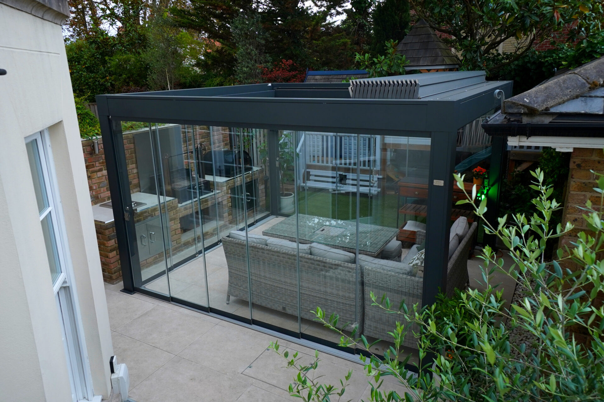 The pergola has stunning glass sliding doors which can be closed or left open as desired. This makes for the perfect accompaniment to their new outdoor dining set up!