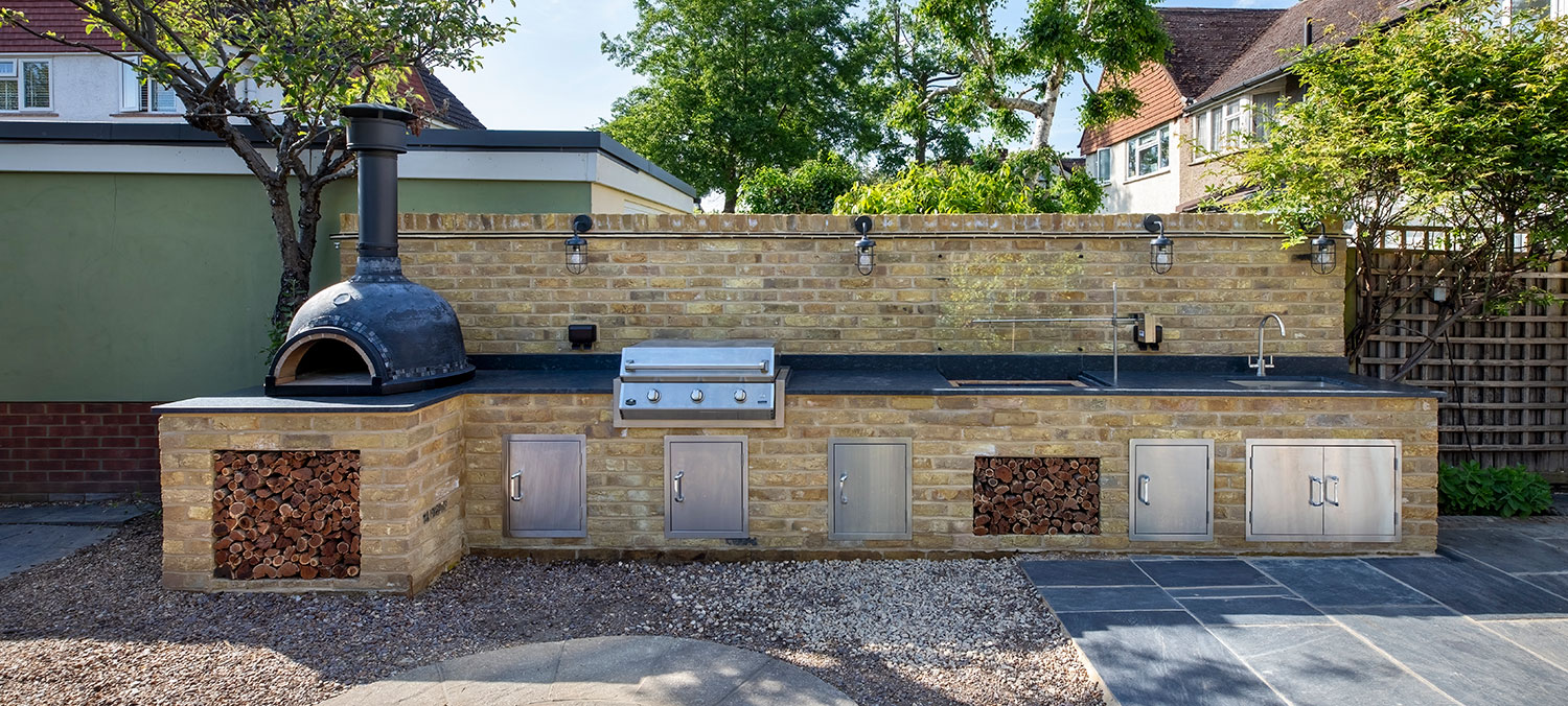 This particular project was for a family who are avid outdoor BBQ enthusiasts who enjoy alfresco dining and entertaining. They were therefore looking for a fully functional outdoor kitchen with washing up facilities and refrigeration.